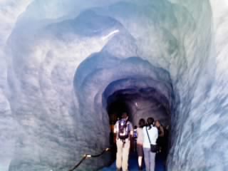 まず、シャモニーの氷河トンネルを見に行きました。この氷河、確か一年に1mと学校では習ったのですが、実際は一年に10メートルとひどい速さで後退しています。地球温暖化の影響をもろに感じました。